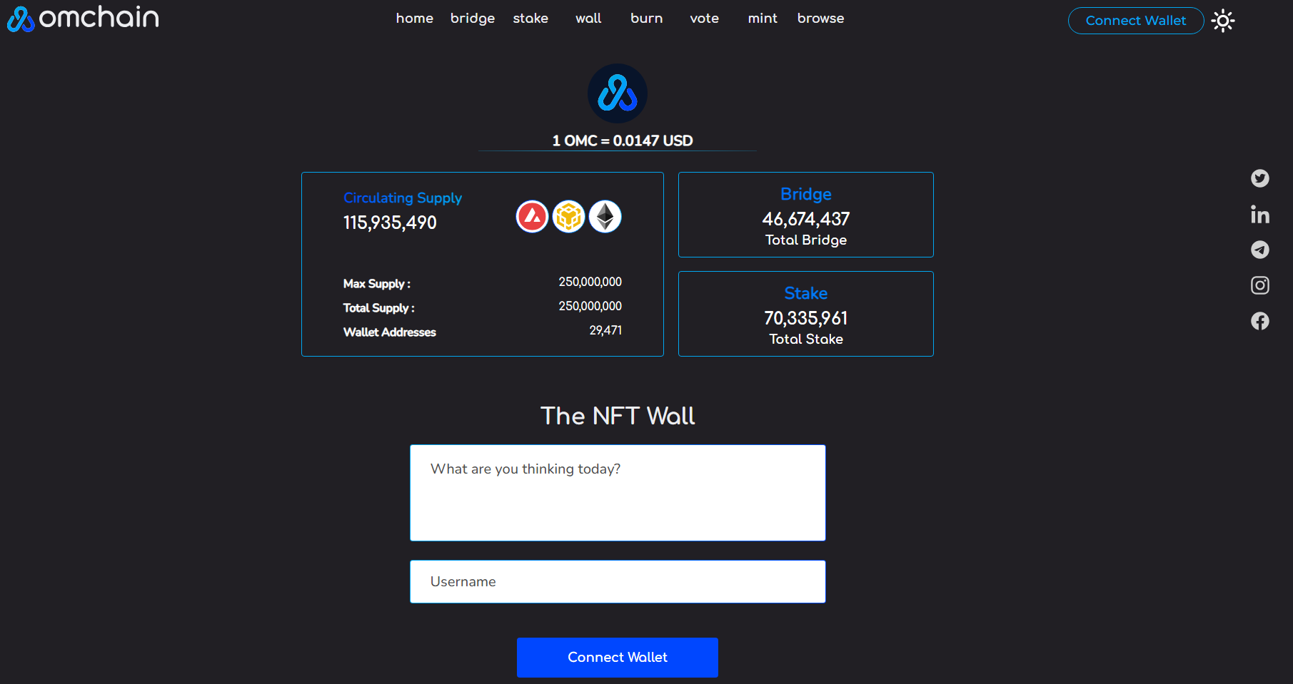 The Web Application developed by Omchain Foundation enables users to easily access various services within our ecosystem. Technically, this application integrates functions such as staking, bridging, voting, NFT minting, burning, and browsing, all within a user-friendly interface. This integrated approach makes blockchain technology more accessible and user-friendly. The application is designed to maximize user security, convenience, and interaction efficiency, thus contributing to Omchain Foundation's mission to expand blockchain technology to a broader audience and simplify its use.